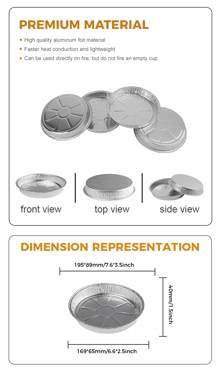 Yunchu aluminium foil menawarkan wadah foil aluminium perak pizza perak 7 inci dengan nomor model 5067. Produk ini memiliki diameter atas 168 mm (sekitar 6,6 inci), diameter lebih rendah 145 mm (sekitar 5,7 inci), dan ketinggian 25 mm (sekitar 0,9 inci). Dengan kapasitas sekitar 400ml (sekitar 14,1 ons), sangat ideal untuk memanggang pizza tanpa menempel saat memanggang, mudah dilepaskan cetakan, dan tanpa bau. Selain itu, desainnya yang benar -benar berkerut mencegah makanan dari tumpahan, meningkatkan kepraktisan. Kami juga dapat menyediakan layanan kustomisasi logo untuk membantu Anda memperdalam kesan pelanggan Anda dan meningkatkan visibilitas merek Anda.