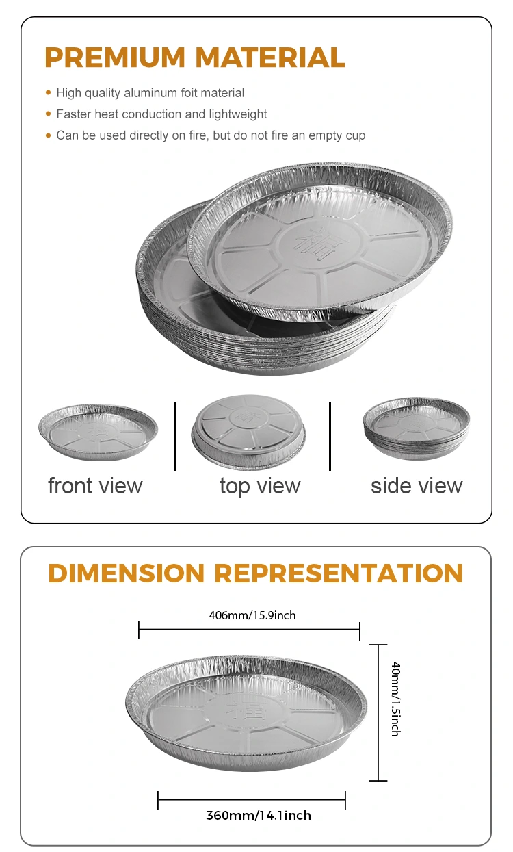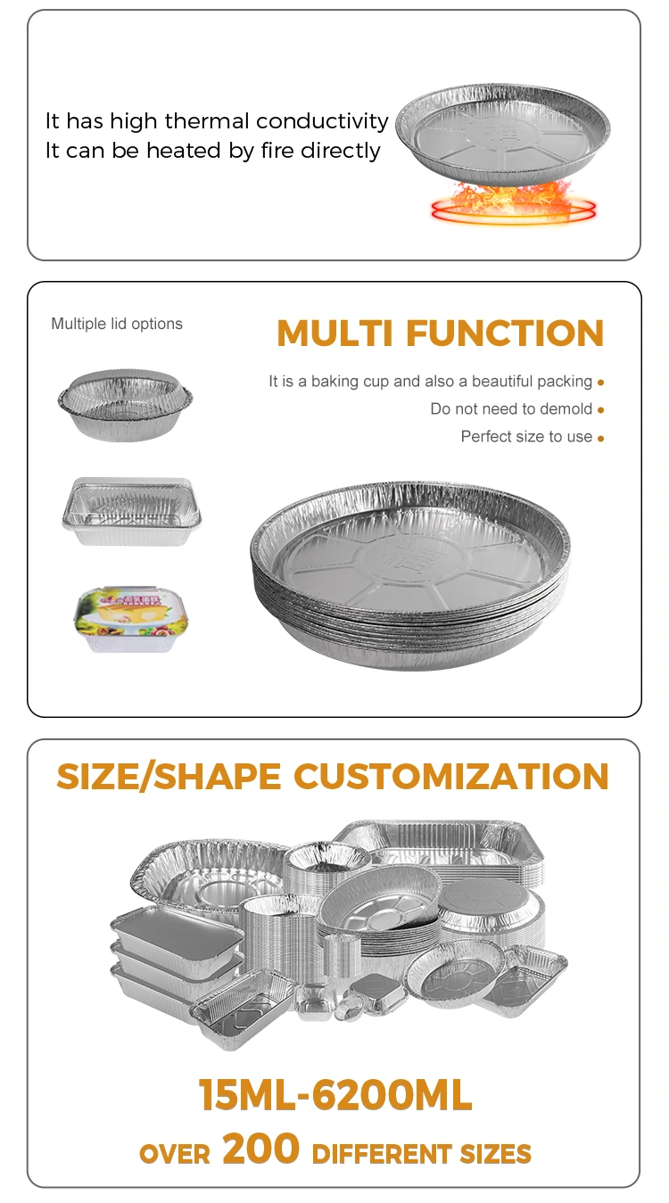 Pemasok foil aluminium Yunchu Model YR3700 Air Fryer Disposable Oven Perak Aluminium Foil Wadah Makanan Disediakan. Wadah ini memiliki diameter 406 mm (sekitar 15,9 inci) di bagian atas, berdiameter 360 mm (sekitar 14,1 inci) di bagian bawah, ketinggian hanya 40 mm (sekitar 1,5 inci), dan kapasitas sekitar 3.700 ml (sekitar 130,5 oz). Mengukus nyala api terbuka lebih mudah dan higienis, kue oven, resistensi suhu tinggi 400 ° C tidak terbakar atau rusak, kue oven tidak lengket, tidak takut barbekyu berminyak dan disengaja, karena kemampuannya untuk secara langsung menghubungi api terbuka, pengguna tidak perlu khawatir tentang masalah keamanan. Wadah aluminium foil tahan terhadap suhu tinggi, sangat tahan terhadap kue, dan tidak mudah dibakar atau rusak. Tepi gulungan penuh adalah bebas minyak, mencegah makanan menempel pada dinding pot, dan perlindungannya lebih intim.