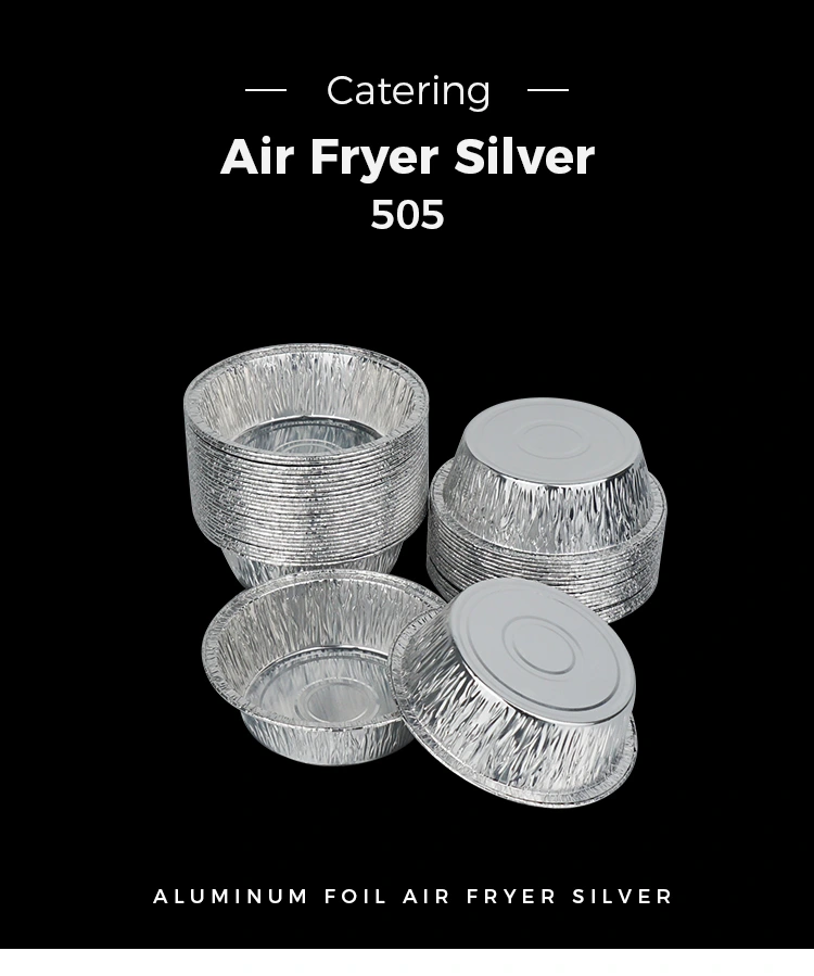 • Wadah Makanan Aluminium Foil Perak Penggoreng Udara BBQ Sekali PakaiWadah Makanan Aluminium Foil Perak Penggoreng Udara BBQ Sekali Pakai