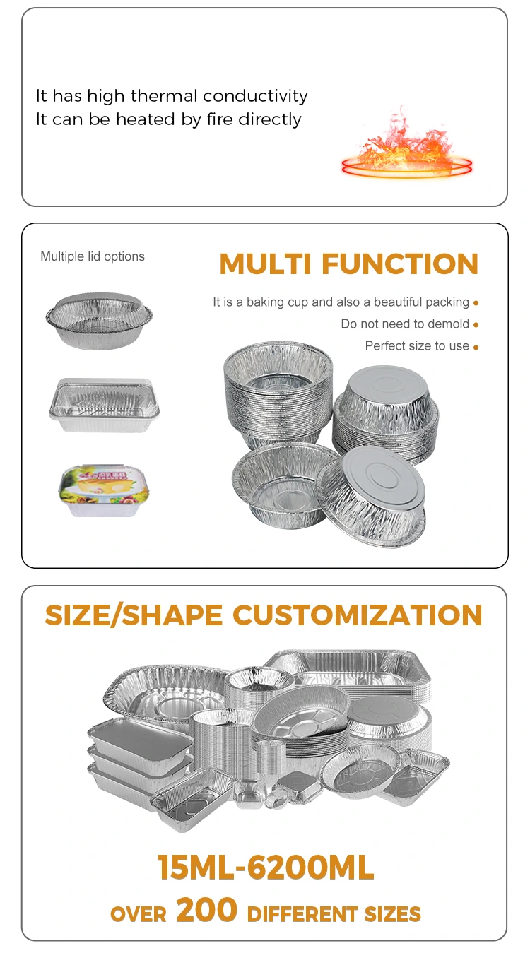 Wadah aluminium foil perak penggoreng udara barbekyu sekali pakai Pemasok Aluminium Foil Yunchu terbuat dari aluminium foil kental food grade, yang aman, tidak beracun, tidak berbau, dan dapat menahan suhu tinggi hingga 220°C. Sangat cocok untuk berbagai skenario memasak suhu tinggi seperti barbekyu, penggorengan udara, oven microwave, dan oven. Tidak mudah rusak atau berubah bentuk, dan memiliki daya dukung beban yang kuat. Dapat dengan mudah membawa semua jenis bahan tanpa khawatir bocor. Desain perak mengkilap tidak hanya memiliki tampilan luar biasa, namun juga meningkatkan konduktivitas termal, memungkinkan bahan dipanaskan lebih merata dan mengunci rasa asli bahan. Pada saat yang sama, bahan aluminium foil memiliki sifat pengawet panas yang baik dan dapat tetap hangat dalam waktu singkat setelah pemasakan selesai, sehingga Anda dapat menyantap makanan hangat yang lezat kapan saja. Desain sekali pakai tidak hanya menjamin kebersihan makanan, menghindari kontaminasi silang, tetapi juga menghilangkan kerumitan pembersihan. Ini memenuhi kebutuhan hidup masyarakat modern yang nyaman, efisien, dan higienis. Baik untuk penggunaan sehari-hari di rumah, perjalanan di luar ruangan, atau berkumpul dengan teman, semuanya adalah wadah aluminium foil yang berguna.