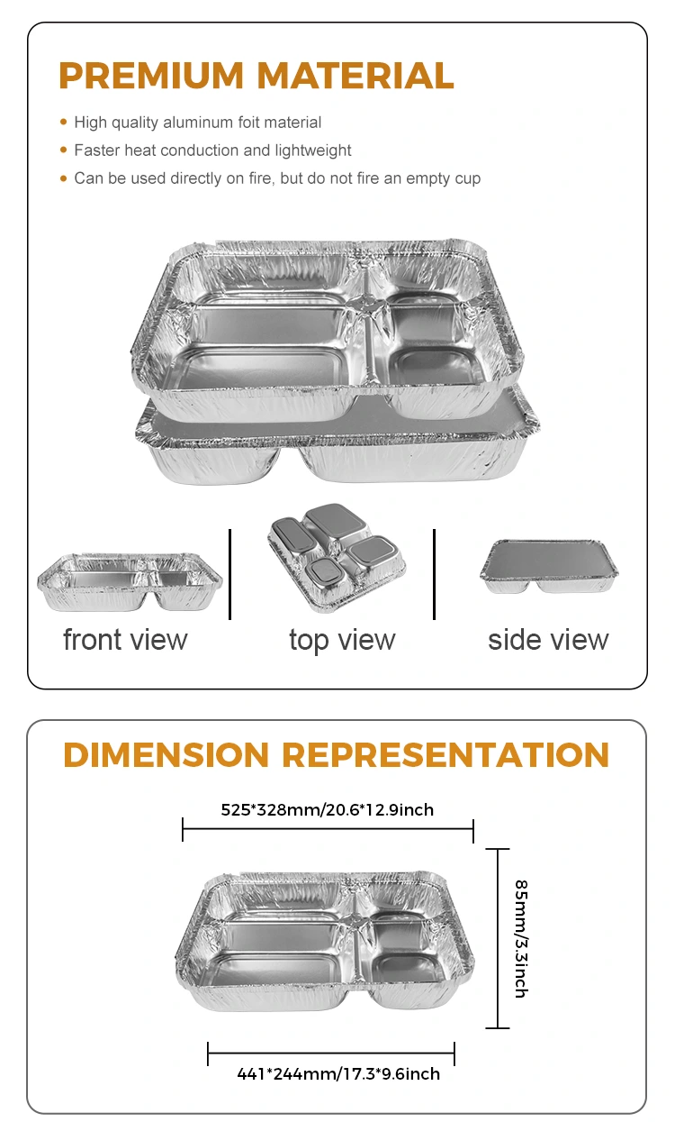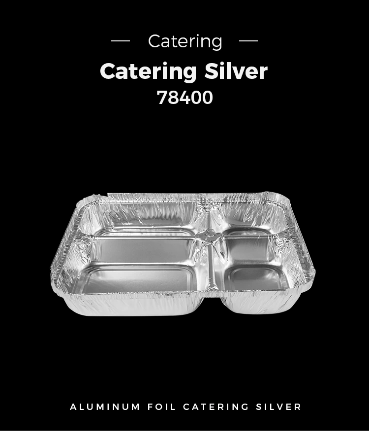 • Wadah foil aluminium perak multi-kompartemen sekali pakaiWadah foil aluminium perak multi-kompartemen sekali pakai