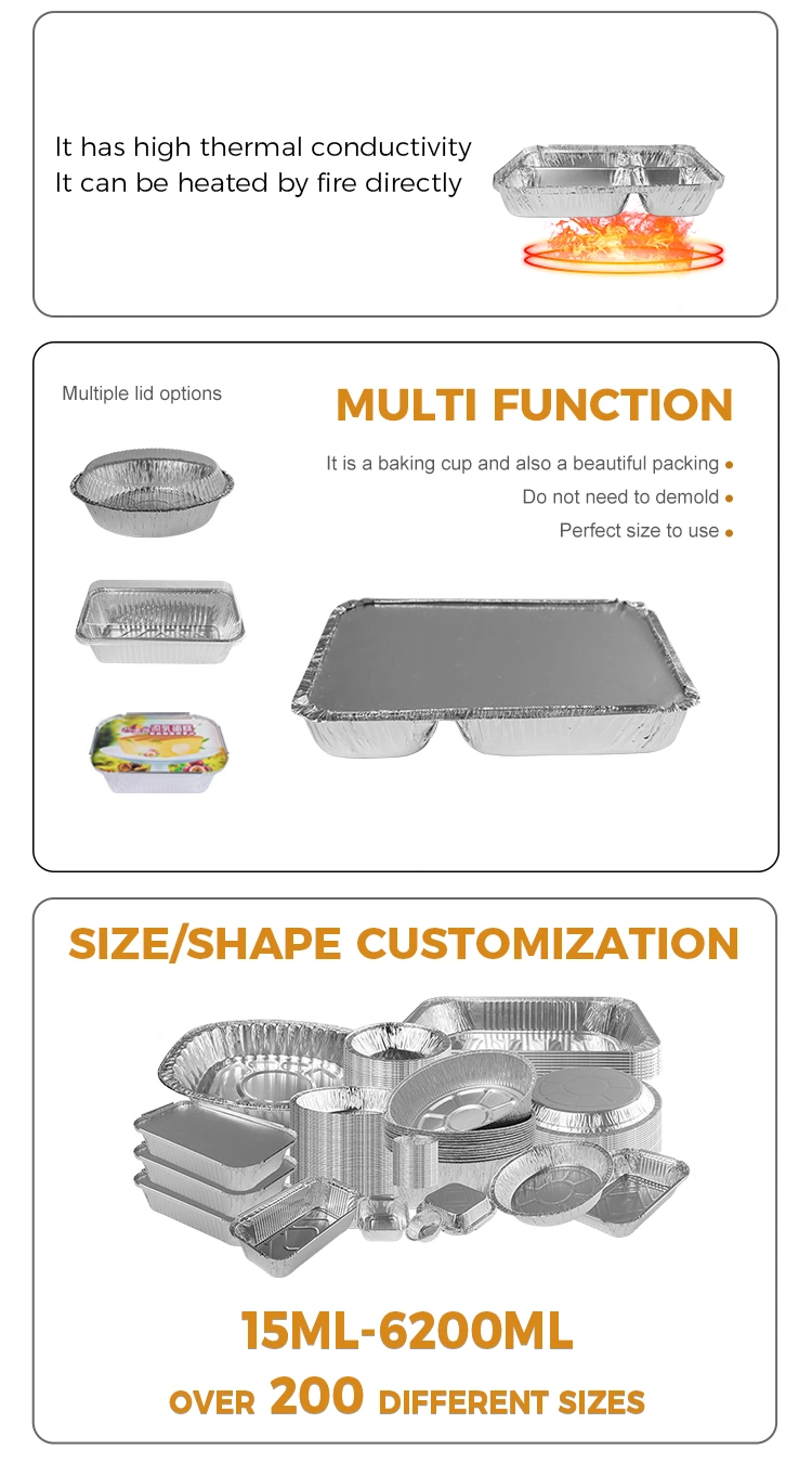 Kotak makan siang aluminium foil ini tidak hanya memiliki sifat isolasi termal, tetapi juga dapat dipasangkan dengan tutup aluminium foil, semakin meningkatkan kepraktisan produk. Selain itu, kami juga menyediakan layanan logo khusus untuk meningkatkan citra merek dan meningkatkan titik memori pelanggan.