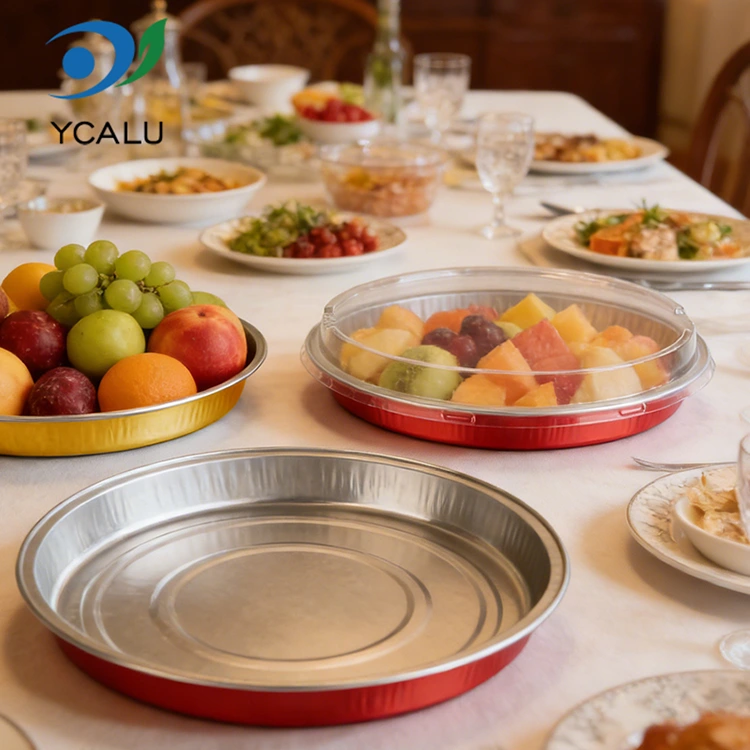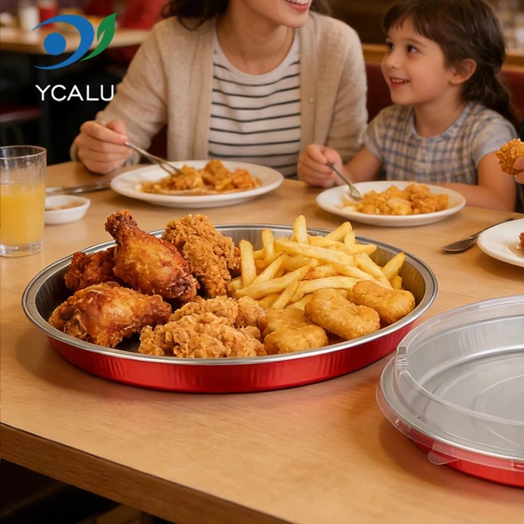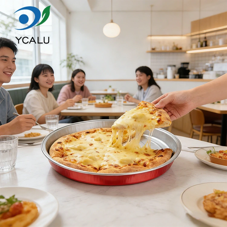 Pemasok Aluminium Foil Yunchu C900 Kemasan Panci Pizza Sekali Pakai Wadah Aluminium Foil Bulat terbuat dari aluminium foil mentah food grade, tanpa bau dan kotoran, sehingga aman untuk menyentuh makanan dengan percaya diri. Ketebalannya seragam dan padat, serta mampu menahan suhu tinggi hingga 250°C dan suhu rendah hingga -20°C. Pizza yang baru panas dapat disajikan langsung. Dapat disimpan di lemari es dan tetap segar tanpa mengganti wadahnya. Dapat dimakan langsung dengan pemanasan, yang sangat meningkatkan efisiensi pengiriman makanan dan menghemat kerumitan pembersihan. Penutup PET aluminium foil secara efektif menghalangi intrusi uap air dan udara serta mencegah kebocoran minyak. Busur bundar klasik secara akurat cocok untuk semua jenis bentuk pizza, dengan berbagai ukuran tersedia dari 7 hingga 9 inci. Ini sangat cocok untuk spesifikasi yang berbeda seperti pizza buatan tangan, pizza Italia, dan kerak tebal Amerika. Tidak ada ruang ekstra untuk mencegah pizza tergelincir dan topping terjatuh. Proses pencetakan satu bagian menghasilkan bentuk yang stabil, tahan terhadap tekanan dan benturan, serta tidak mudah berubah bentuk atau rusak selama pengangkutan. Ini juga dapat mempertahankan bentuknya saat ditumpuk dan disimpan, sepenuhnya mengatasi masalah kemasan makanan yang mudah rusak dan memastikan bahwa setiap pizza dikirim dalam kondisi baik.