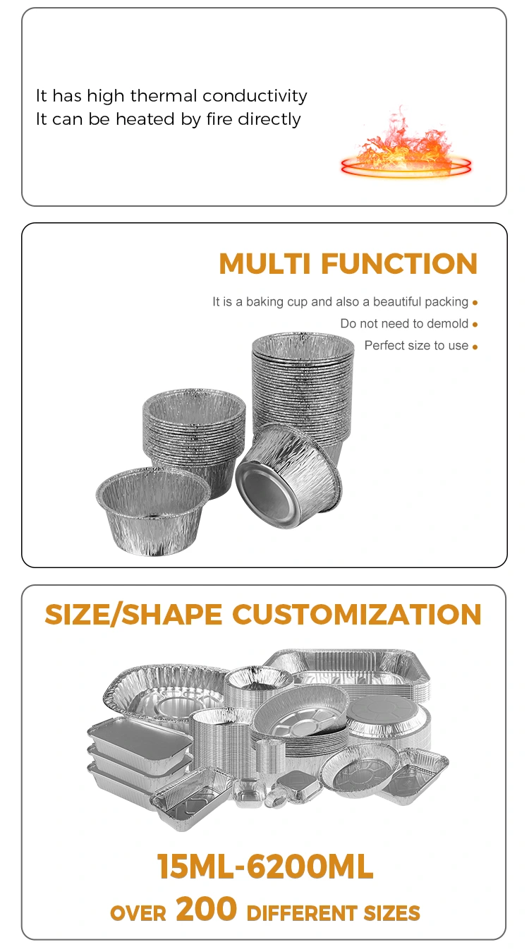 Fitur: Sehat dan ramah lingkungan, tidak perlu dibersihkan, cocok untuk membuat berbagai makanan rumah tangga dan makanan panggang. Ini adalah pilihan terbaik untuk keluarga dan toko roti. Bahan aluminium foil aman dan higienis, tidak perlu dibersihkan, dan dapat dipanggang di atas api terbuka, sehingga nyaman untuk membuat makanan lezat.