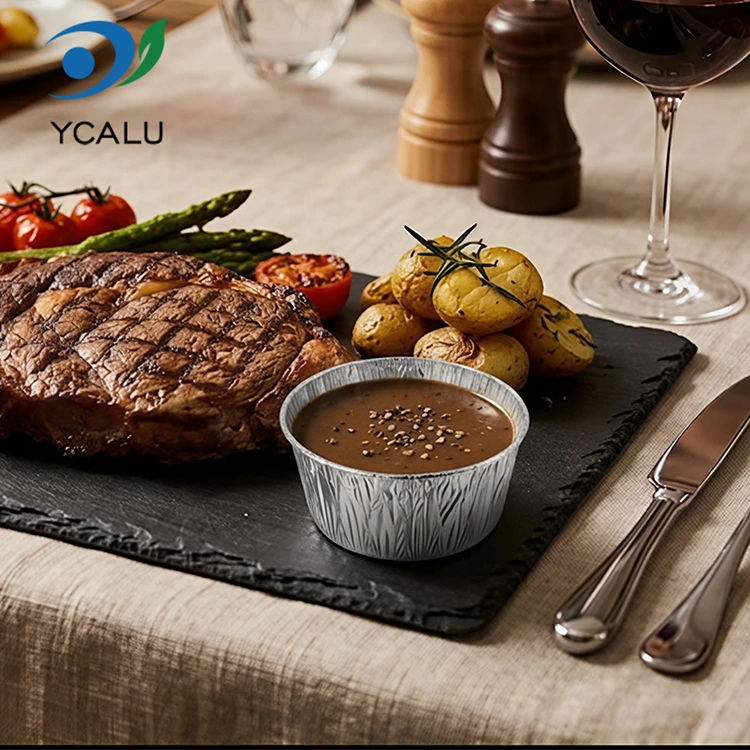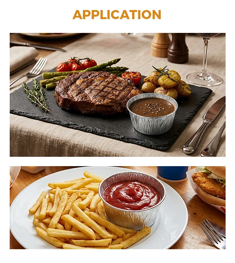 • Wadah Makanan Aluminium Foil Perak saus bulat sekali pakaiWadah Makanan Aluminium Foil Perak saus bulat sekali pakai