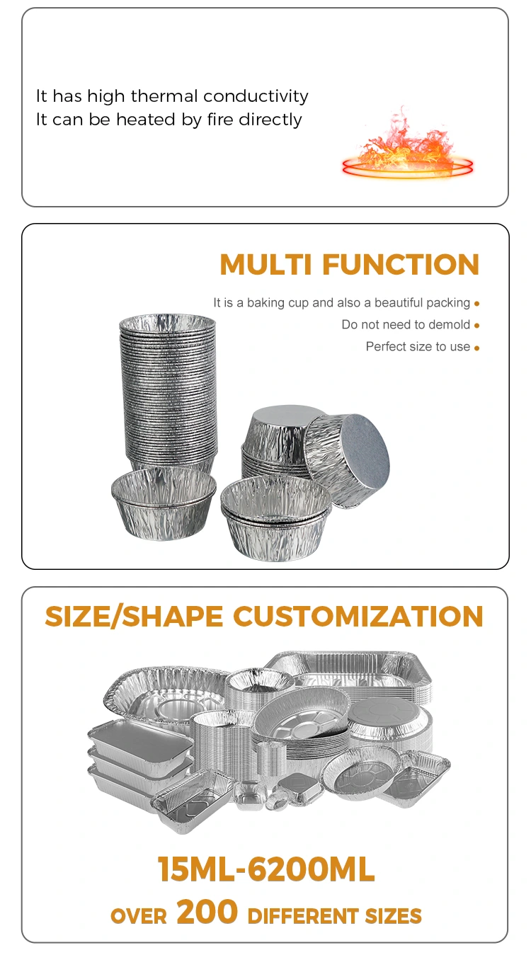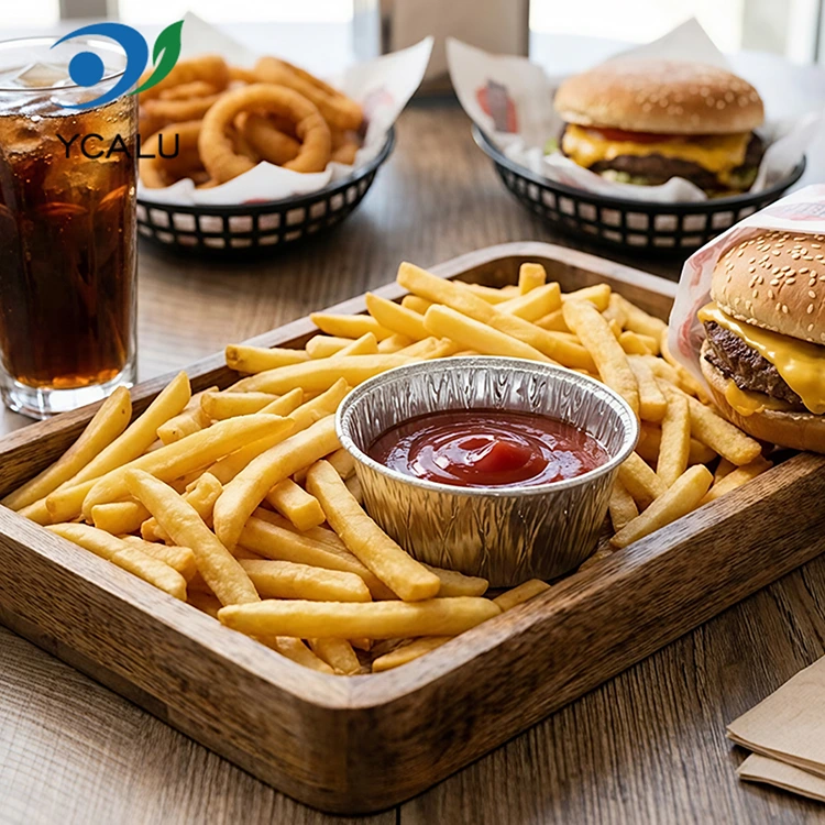 Pemasok Aluminium Foil Yunchu Penggorengan Udara Saus Bulat Sekali Pakai Wadah Aluminium Foil Perak Bahan Aluminium Foil Food Grade, tidak berbau, tidak ada residu logam berat, memenuhi standar kontak makanan, kemurnian tinggi dan sifat kimia yang stabil. Meskipun diisi dengan saus asam dan dipanaskan pada suhu tinggi, tidak akan melepaskan zat berbahaya, dan Anda dapat merasa benar-benar aman saat bersentuhan langsung dengan makanan. Produk ini telah lulus sertifikasi food grade FDA dan secara ketat mengikuti standar terkait FDA 21 CFR, setelah pengujian migrasi profesional dan deteksi logam berat, kandungan zat berbahaya seperti timbal dan kadmium jauh di bawah ambang batas keamanan, dan kualifikasinya lengkap. Baik untuk penggunaan di rumah atau komersial, Anda dapat memilih dengan tenang. Gunakan untuk membagi saus untuk mengasinkan daging, saus salad untuk sayuran, dan hidangan cuka untuk mencelupkan pangsit. Porsinya pas tanpa membuang-buang. Juga dapat menghindari perpindahan bau, dan dapat disimpan dengan rapi di lemari es tanpa memakan tempat. Pedagang bawa pulang menggunakannya untuk menyimpan saus, yang tersegel dan anti bocor, serta dikirimkan ke pelanggan dengan bersih. Baik itu saus tomat, saus sambal manis, atau saus wijen kental, tidak akan ada rasa malu jika makanan bocor dan kotor. Bahkan untuk piknik di luar ruangan dan berkemah, Anda dapat membawa beberapa dan menggunakannya untuk menyimpan saus celup. Ringan dan tidak memakan tempat. Anda bisa langsung membuangnya setelah digunakan. Anda tidak perlu membawa banyak wadah kotor saat pulang ke rumah. Ini terutama tentang kemudahan dan bebas masalah.