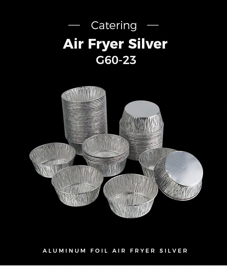 Yunchu Aluminium Foil Supplier Sekali Pakai Saus Bulat Air Fryer Wadah Aluminium Foil Perak Aluminium foil perak memiliki tekstur yang tebal dan tidak mudah rusak atau berubah bentuk. Meski berisi kuah kental dan bahan berkuah, namun tetap bisa dipegang dengan kuat tanpa bocor atau roboh. Tepinya telah diperkuat dan ditekan, menjadikannya halus saat disentuh, tidak akan menggores tangan Anda, dan lebih aman untuk dipegang. Desain sekali pakai, buang setelah digunakan, sehingga Anda tidak perlu repot membersihkan wadah. Hal ini tidak hanya meningkatkan efisiensi tetapi juga menjaga lingkungan tetap bersih dan rapi dalam skenario seperti pengemasan makanan untuk dibawa pulang, toko katering, berkemah, dan piknik. Selain itu, bahan aluminium foil dapat didaur ulang, ramah lingkungan dan ramah lingkungan, serta tidak akan menimbulkan terlalu banyak beban lingkungan jika dibuang setelah digunakan, dengan mempertimbangkan kenyamanan dan perlindungan lingkungan.