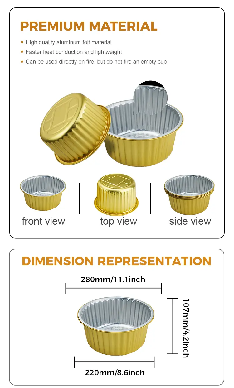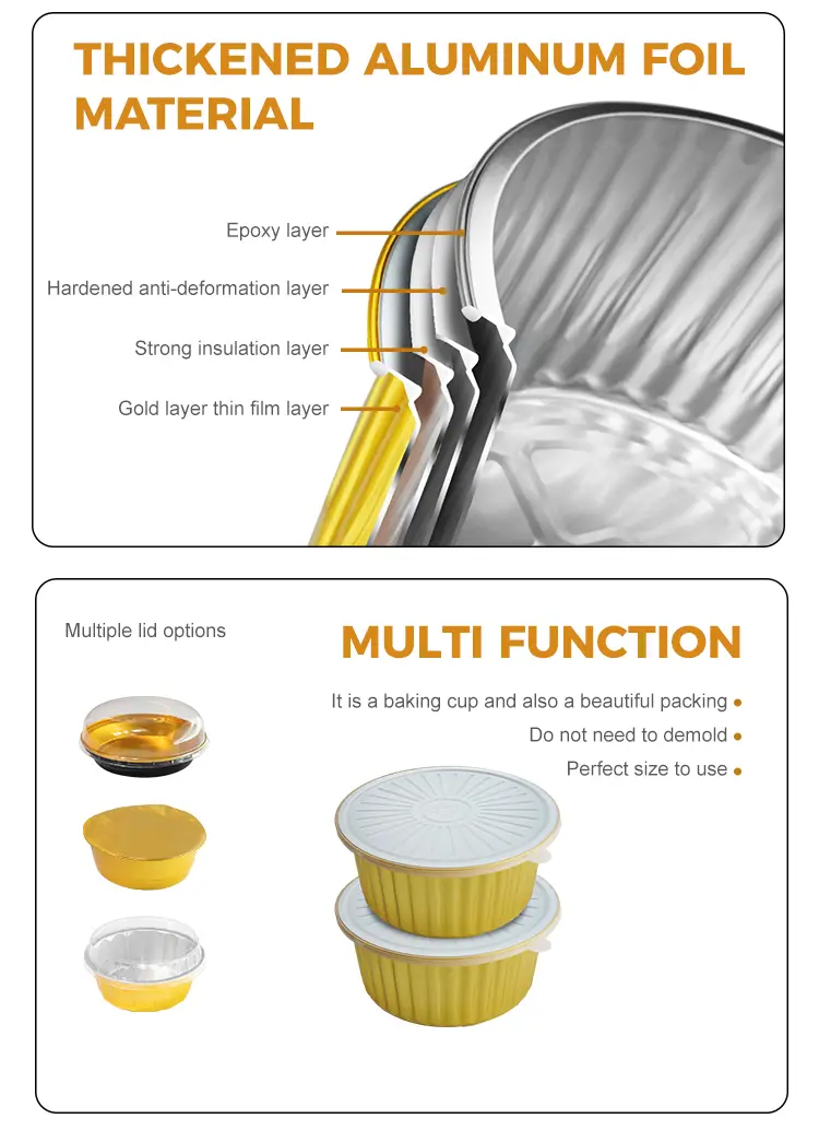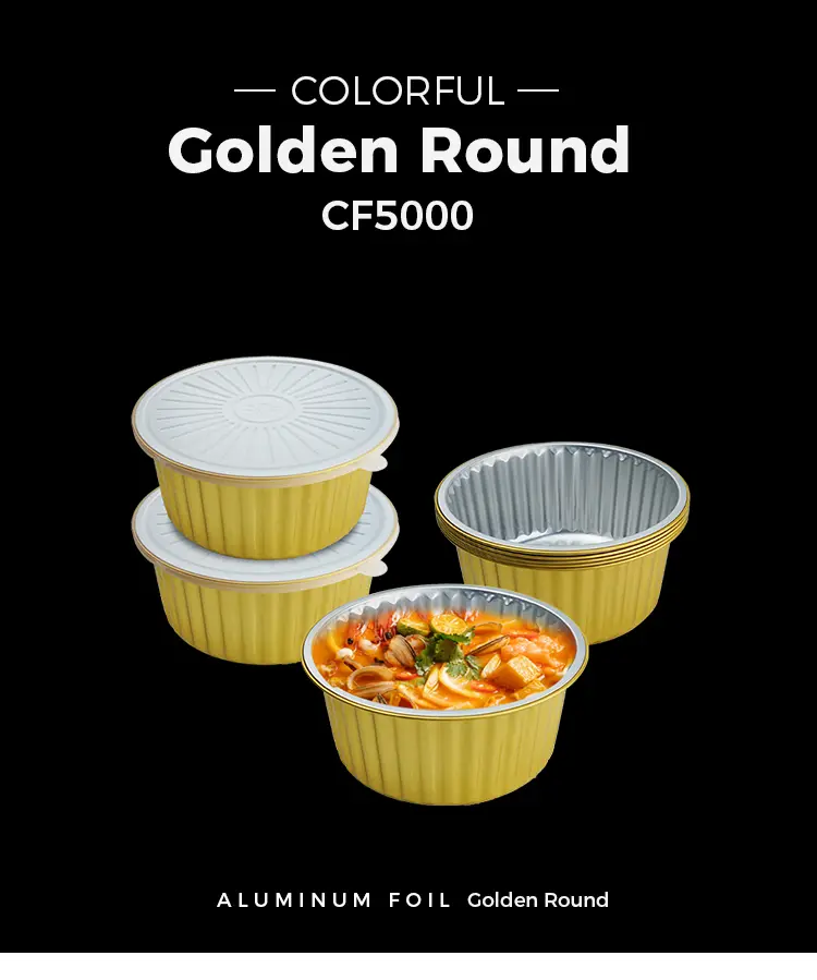 • Disposable Sealable Golden Round Aluminium Foil ContainersDisposable Sealable Golden Round Aluminium Foil Containers