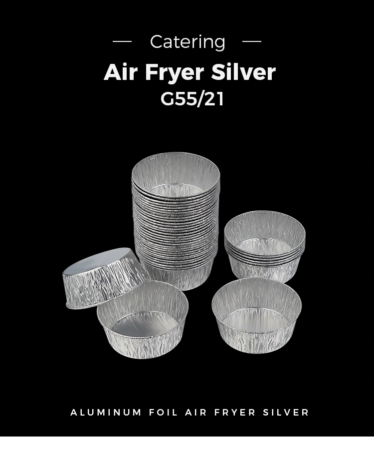 • Penggorengan udara celup bulat perak sekali pakai Wadah Makanan Aluminium Foil PerakPenggorengan udara celup bulat perak sekali pakai Wadah Makanan Aluminium Foil Perak