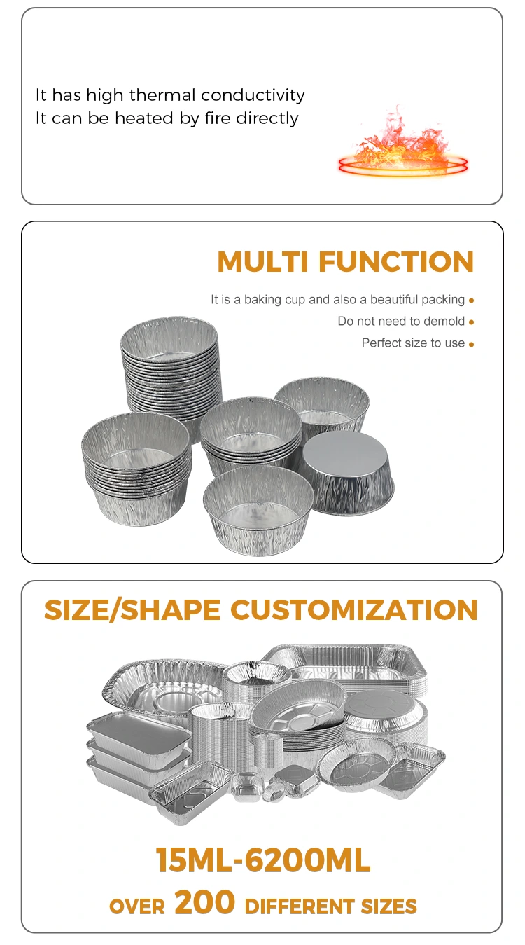 Wadah aluminium foil perak sekali pakai dari Pemasok Aluminium Foil Perak sekali pakai dari Pemasok Aluminium Foil dirancang untuk sekali pakai, sepenuhnya menghilangkan tugas membosankan mencuci piring setelah makan, menghemat waktu dan energi; bahan aluminium foil dapat didaur ulang, ramah lingkungan dan bebas beban, dengan mempertimbangkan kenyamanan dan konsep ramah lingkungan. Penampilan kecil dan indah, penyimpanan yang dapat ditumpuk tidak memakan ruang, dengan mudah menghemat ruang penyimpanan dapur. Baik digunakan di rumah atau di bisnis, wadah aluminium foil bulat perak sekali pakai ini dapat memecahkan masalah penyimpanan dan penggunaan saus dengan bahan berkualitas tinggi dan desain yang cermat, membuat setiap memasak dan setiap pertemuan lebih bebas dari rasa khawatir dan lebih nyaman.