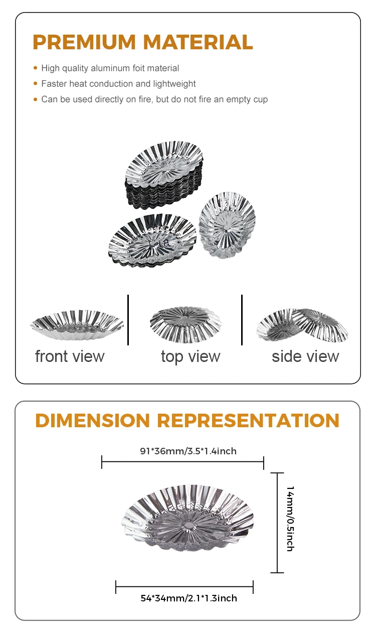 Yunchu aluminium foil foil's renda custard tart tart perak aluminium foil wadah makanan, desain tubuh non-slip cangkir, tubuh cangkir dengan tekstur anti-selip, meningkatkan gesekan, mencegah tergelincir. Desain mulut piala renda dapat dilipat dan disimpan, yang nyaman dan praktis. Beberapa desain berkapasitas besar, penggunaan satu kali, tidak perlu membersihkan, berbagai penggunaan, cocok untuk tart telur panggang, kue, keripik kuning telur, kue mangkuk dan hidangan lezat lainnya. Baki tart telur dari pemasok foil aluminium Yunchu telah melewati sertifikasi ERP Jerman, sertifikasi UE SGS dan sertifikasi sistem manajemen kualitas ISO9001. Kami menggunakan bahan-bahan tingkat makanan yang sehat dan ramah lingkungan untuk memastikan keamanan dan non-toksisitas produk kami. Bahan-bahan ini tidak hanya dapat terbarukan tetapi juga ramah lingkungan, mencerminkan persyaratan ketat kami dalam keamanan pangan dan komitmen kami untuk mengejar standar berkualitas tinggi untuk produk kami secara keseluruhan.