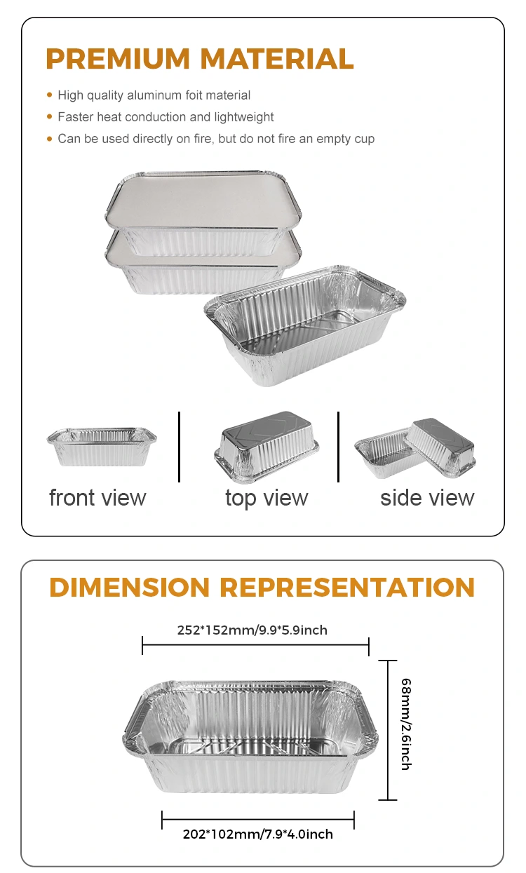 ​Yunchu aluminum foil supplier Rectangular air fryer packing Silver Aluminum Foil Containers, longer thermal insulation, long barbecue aluminum foil container, hygienic and healthy material, can directly contact food, selected high-quality aluminum foil material, reliable product quality, heat preservation, retain the original taste of food, lock the heat of food, enjoy healthy food, large portion loading, no need to clean laboriously, Dapat mengakomodasi sebagian besar makanan, dapat digunakan dengan penutup aluminium foil, satu sisi aluminium foil, kartu putih satu sisi. Permukaan aluminium foil tahan minyak dan tahan air, dan sisi aluminium foil menghadap ke bawah saat digunakan. Dukung kombinasi aluminium kombinasi pemesanan grosir, dapat memberikan kustomisasi pencetakan pola, satu MOQ tunggal 1000 buah/atas, wadah foil aluminium perak persegi panjang ini memiliki berbagai spesifikasi dan model untuk dipilih, Anda dapat menghubungi staf penjualan untuk menanyakan.