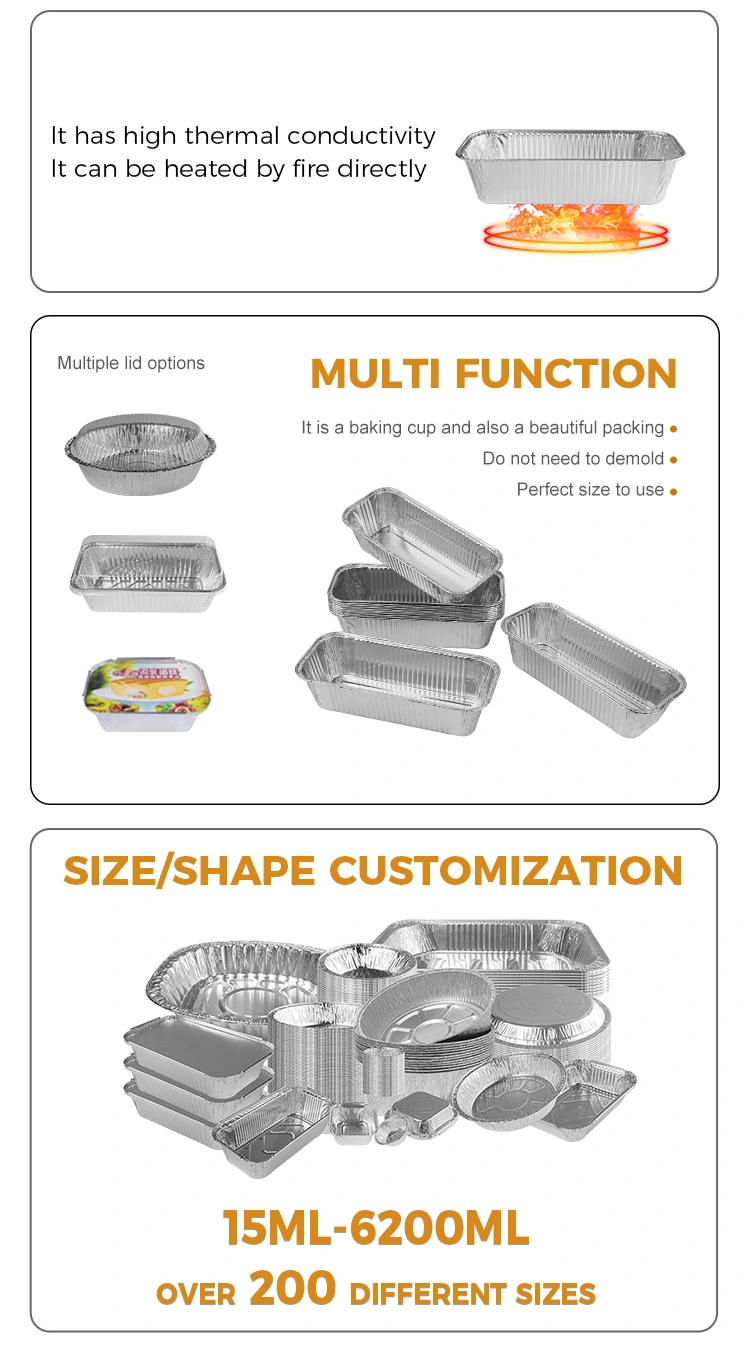 2325 persegi panjang fryer fryer wadah foil perak yang disediakan oleh pemasok foil aluminium Yunchu cocok untuk berbagai kesempatan, apakah itu barbekyu luar ruangan atau pertemuan keluarga. Pedagang dapat menyesuaikan pola dan mencetaknya sesuai dengan kebutuhan mereka, menjadikan wadah ini pilihan unik untuk kemasan takeaway, yang mendukung pemanasan api terbuka dan pemanasan lampu minyak, melakukan panas secara merata, memastikan bahwa makanan dipanaskan secara merata dan tidak menempel pada wajan. Ini dapat digunakan segera bahkan ketika ditempatkan di penggorengan udara, dan desain cekung dan cembung di bagian bawah meningkatkan gesekan dan mencegah tergelincir. Pengaku di sisi meningkatkan kekokohan produk, sedangkan desain hemming memastikan pas pada tutupnya, secara efektif mengunci suhu makanan.