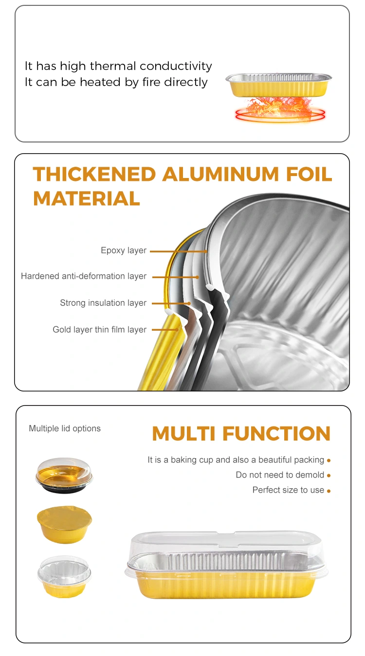 Yunchu aluminium foil pemasok kue kue smoothwall aluminium foil wadah terbuat dari bahan foil aluminium tingkat makanan 8011, memilih untuk menyimpan di kulkas dengan tutup, tutup aluminium foil, rection yang sepenuhnya dapat digunakan, tidak dapat digunakan di fryer udara, oven dan peralatan oven lainnya, oven lainnya, oven lainnya, oven dan peralatan oven, universal. dan ramah lingkungan, desain cekung dan cembung di bawah tidak hanya meningkatkan stabilitas produk, tetapi juga berperan dalam anti-slip; Pengaku di sisi meningkatkan kekokohan produk, membuatnya lebih tahan lama, dan di samping itu, wadah foil aluminium berdinding terang ini menawarkan berbagai warna untuk dipilih, memungkinkan Anda untuk menyesuaikannya sesuai dengan preferensi Anda.