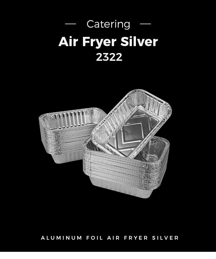 Wadah foil Aluminium Aluminium Perak Square Baking ini terbuat dari bahan aluminium foil grade makanan, memastikan bahwa produk tersebut bebas bau dan sepenuhnya sesuai dengan standar keamanan pangan.