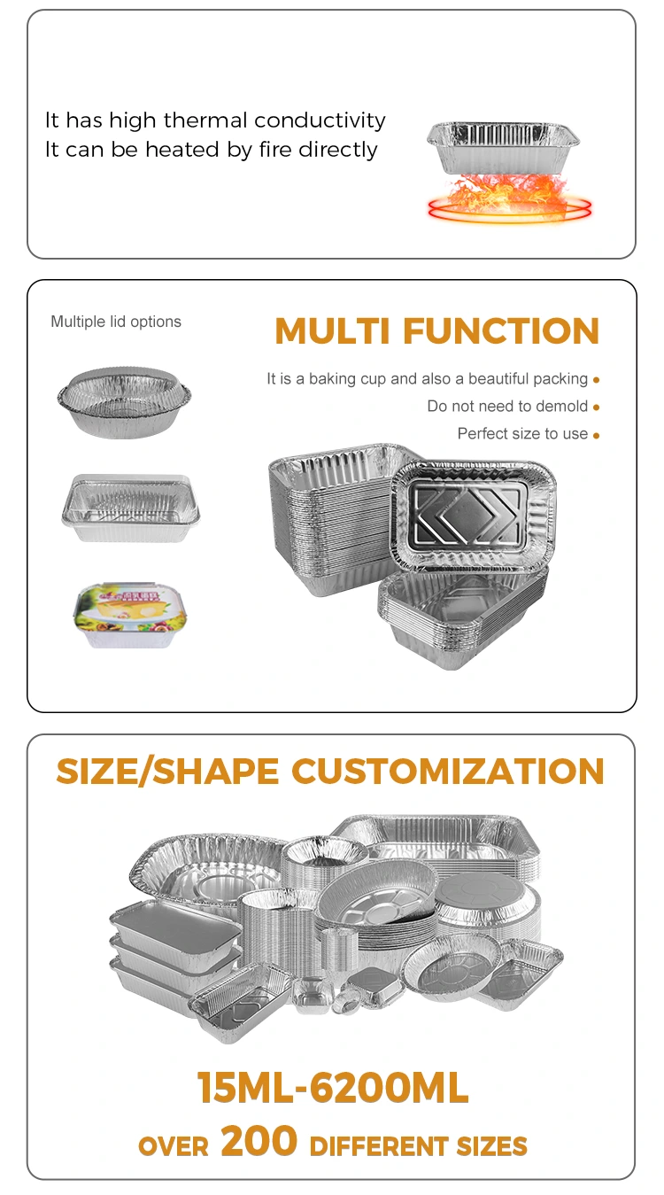 Yunchu Aluminium Foil Supplier Model 2322 Kontaner Foil Aluminium Aluminium Pan Silver sangat populer di pasaran karena kualitas produknya yang sangat baik dan desain yang unik. Struktur produk fleksibel untuk memenuhi kebutuhan berbagai skenario, dan menyediakan layanan khusus, termasuk logo dan pencetakan pola, yang membantu meningkatkan citra merek. Selain itu, layanan pemesanan grosir kombinasi aluminium foil juga sangat disukai, dengan moQ tunggal yang disesuaikan dengan 1000 buah.