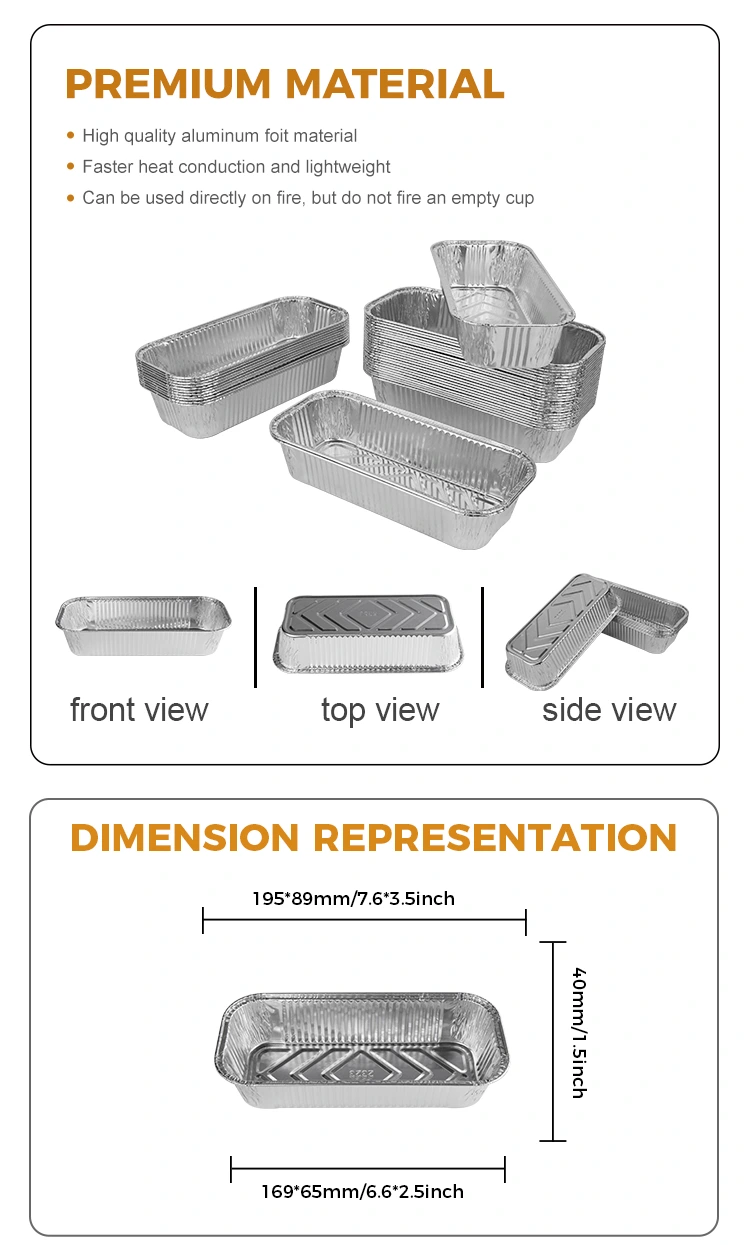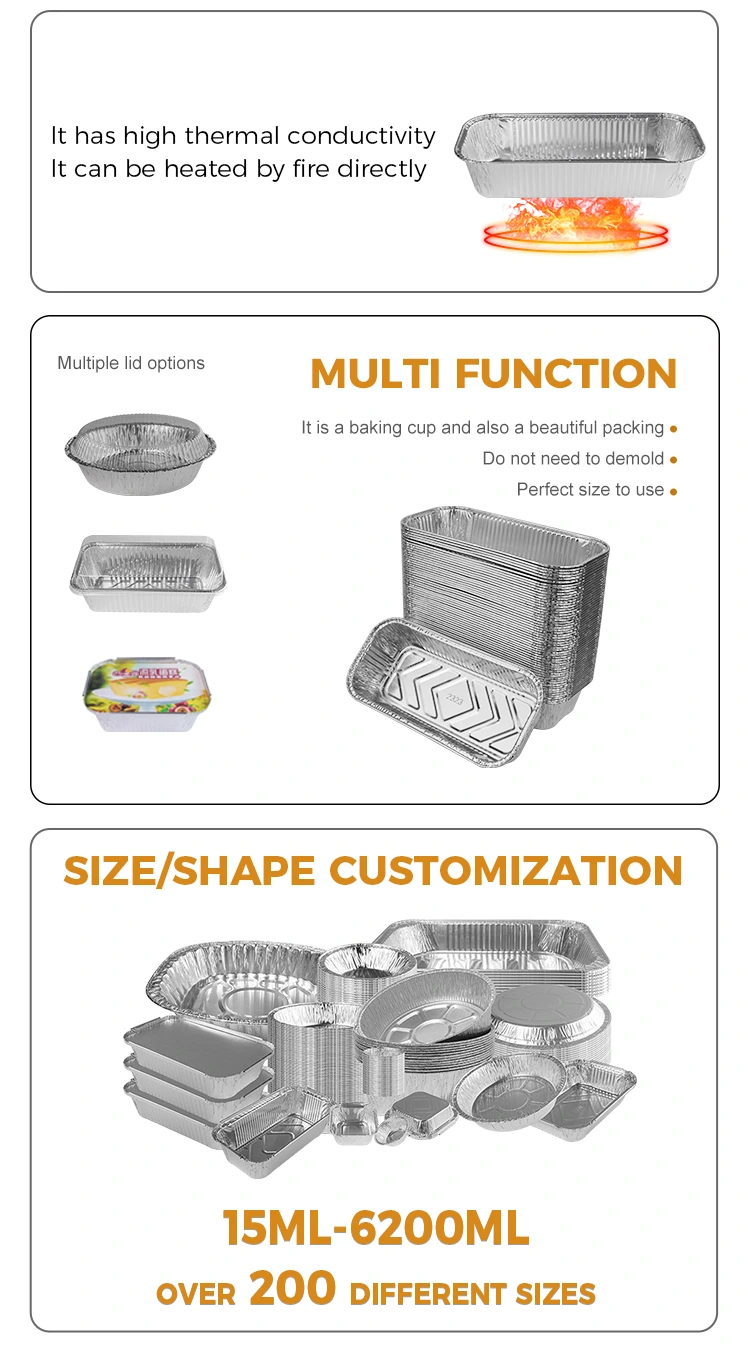Fitur: Kotak Makan Siang Grosir 8011 Aluminium Foil Bahan terbuat dari pelestarian panas yang baik, yang dapat mempertahankan suhu makanan dan membuat makanan lebih lezat. Selain itu, wadah aluminium aluminium perak persegi panjang kami juga memiliki fungsi pelestarian panas, yang dapat dicocokkan dengan tutup kertas aluminium foil dan tutup plastik PET, yang nyaman bagi Anda untuk menyesuaikan logo Anda, semakin memperdalam kesan pelanggan, dan meningkatkan citra merek Anda.