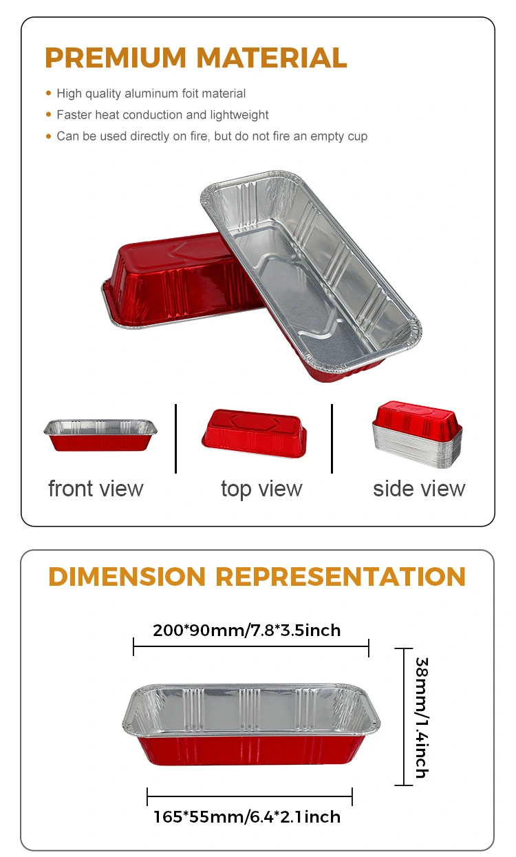 Yunchu Aluminium Foil memberi Anda katering roti merah persegi panjang berkualitas tinggi Wadah Aluminium Foil Perak, yang dirancang tahan lama dan tahan panas, dapat menghantarkan panas secara merata untuk mencegah hangus, dan memiliki penyegelan yang kuat agar tetap segar.