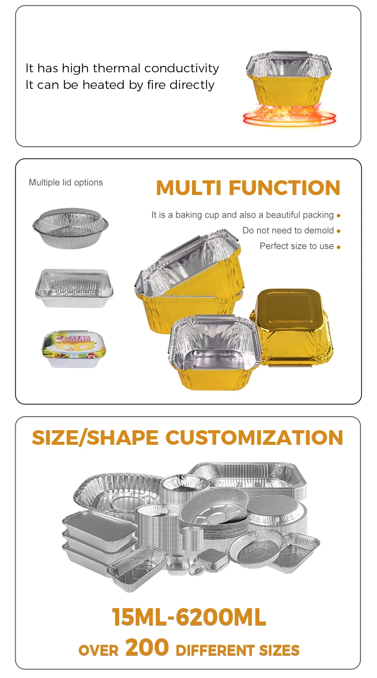 Yunchu Aluminium Foil Square Square Baking Oven Perak Aluminium Foil Wadah Pelindung tidak mencuci dan multi-goreng, tahan air dan pengeringan minyak, tidak perlu membersihkan, oven, penggorengan udara, barbekyu, bahan kukus, kantung yang berulang tanpa tekanan, bahan bakarnya tebal dan dapat dibersihkan dengan air, penggunaan yang berulang tanpa tekanan yang berulang kali tanpa tekanan, variasi. Telur yang dikukus-kering, dikukus, memanggang puding, salad buah, dll., Aman untuk memasuki bahan grade kontak makanan, Yunchu secara ketat mengikuti persyaratan untuk memilih bahan kesehatan bahan makanan grosir, yaitu, cetakan juga berkemasan, layanan pemesanan kombinasi aluminium foil juga menerima pesanan, dengan moq kustom 3000 buah khusus.