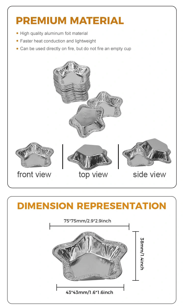 • Gelas tart alumunium foil berbentuk bintang untuk memanggang Wadah Makanan Aluminium FoilGelas tart alumunium foil berbentuk bintang untuk memanggang Wadah Makanan Aluminium Foil